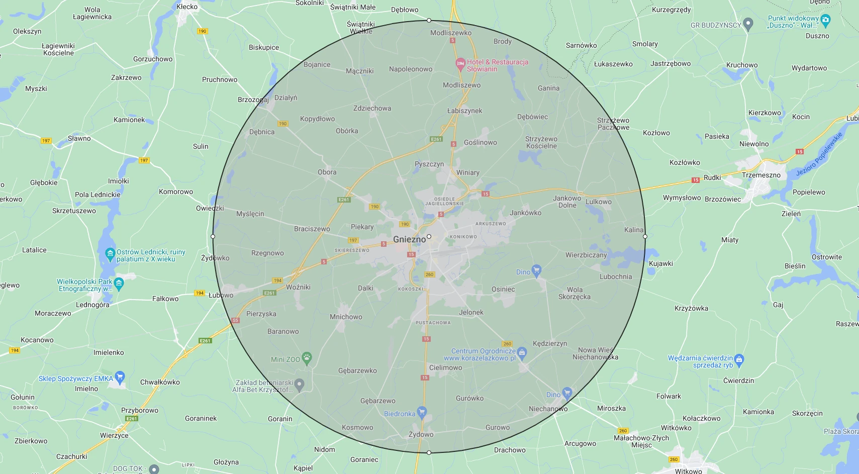 W promieniu 10km od Gniezna dojazd gratis, zlecenia na większej odległości – do uzgodnienia indywidualnie.
